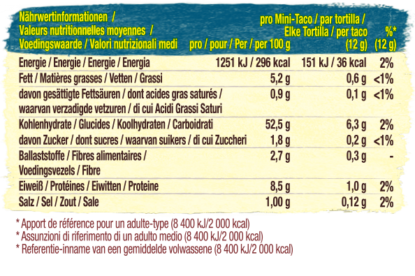 Simples à remplir et simples à déguster – les nouvelles Mini Stand 'N Stuff Soft Tortillas ont la taille parfaite pour tester les garnitures les plus variées et servir toute la diversité du Mexique à table. Idéales aussi pour les petites mains, ce qui en fait des tacos délicieux parfaits pour toute la famille.